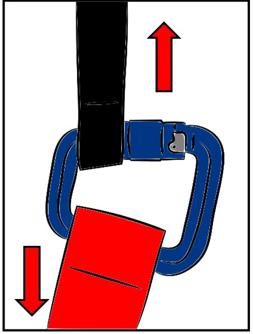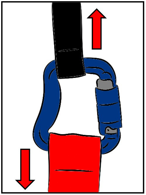 As we have just seen, a connector is designed to connect 2 elements (straps or other loops). Normally the applied load will be along the axis formed by the 2 connected elements.
