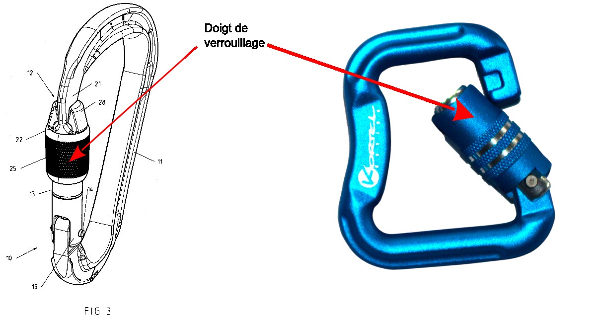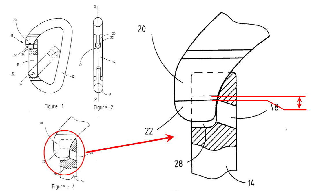 One of these main characteristics is the functional play located at the finger closure. In climbing/mountaineering, and for safety reasons, a karabiner must be able to continue to open under a load of 80kg (the weight of a man). Therefore, in their design, there is a functional play that always allows the finger to open even when it is loaded in this way and which allows a slight movement of one part in relation to the other.