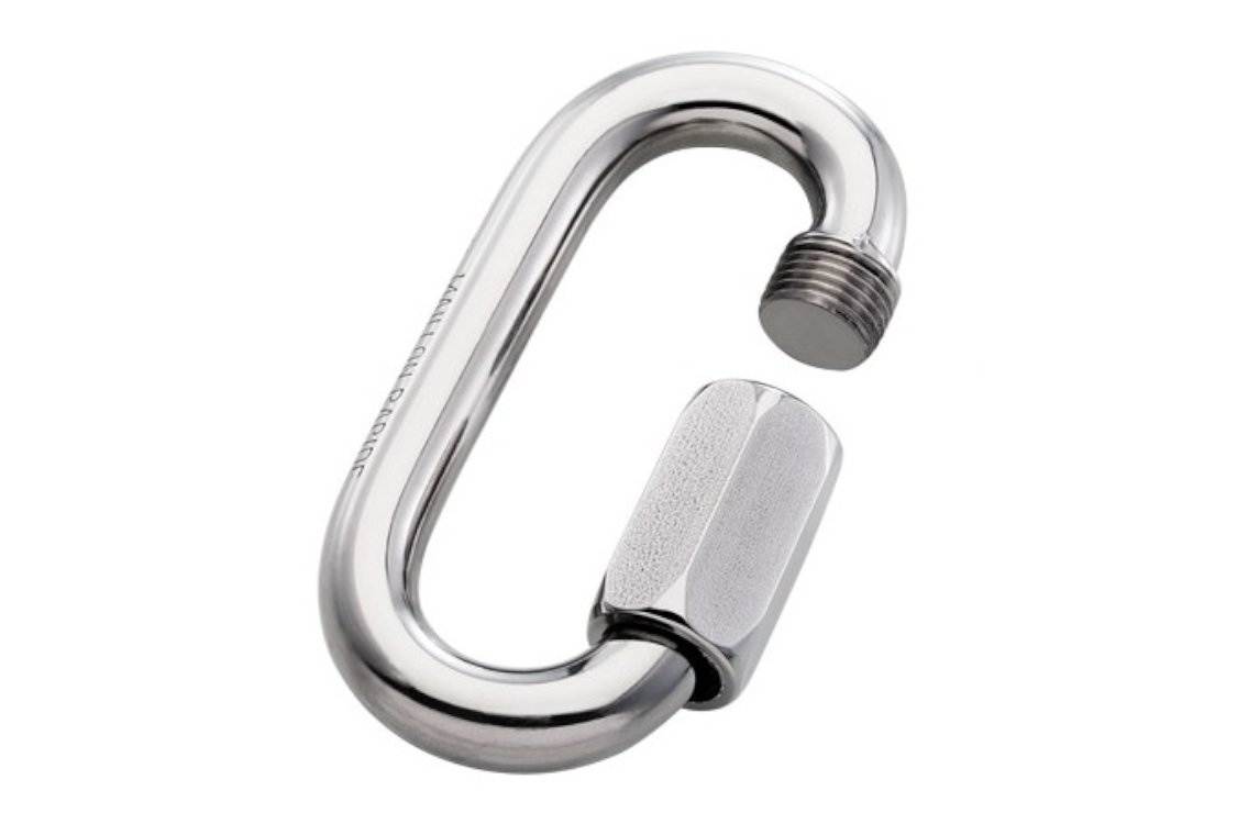 To simplify, it is a metal ring equipped with an articulated part that allows opening and closing in order to insert all kinds of connection loops. This articulated part, called the "gate", can be equipped with a locking system to prevent accidental opening.