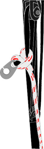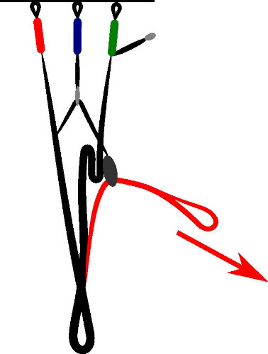 – During the pre-flight check, it is important that no lines (especially the un-sheathed ones) are hooked at the level of the system, especially if the connection is made with split hooks. It is possible that thin lines may get stuck in them. The take-off must then be interrupted. We recommend a lark's head connection of the accelerator line around the split hook located on the risers. In this case, there is no tension at the hook and it will be less convenient for a line to get stuck. The lark's head connection is just as quick and safe to implement.