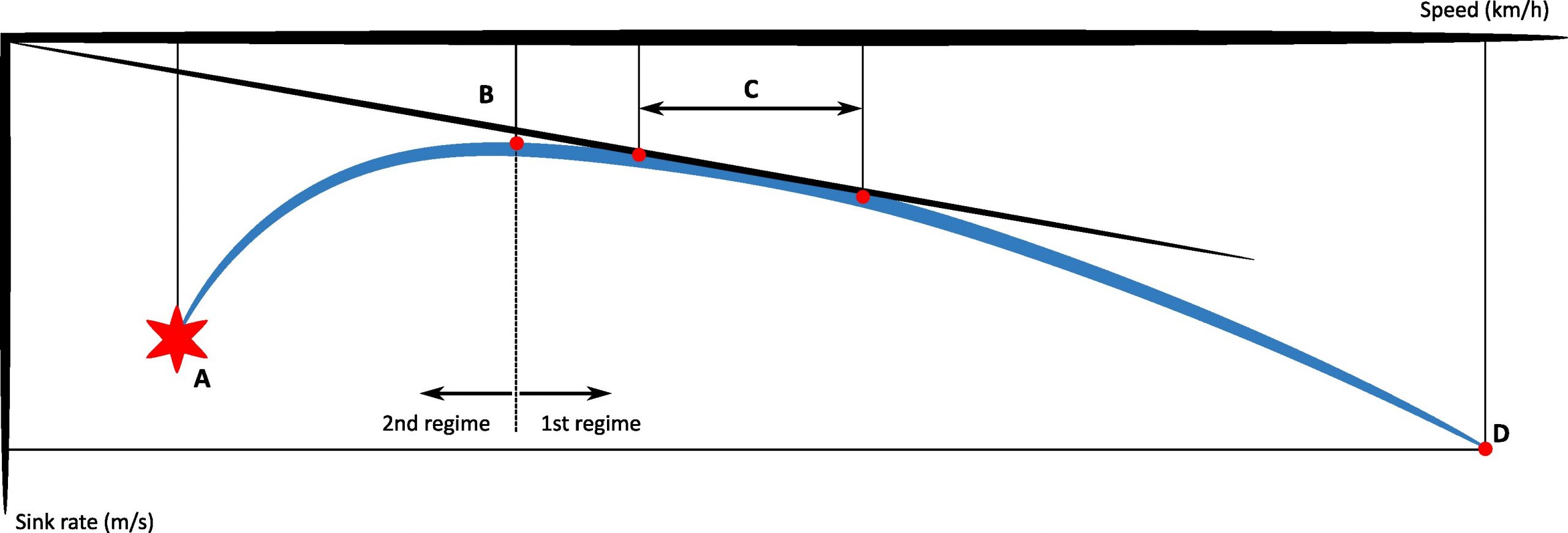 – Speeds below the minimum sink rate speed, called "2nd regime" (ascending part of the curve).