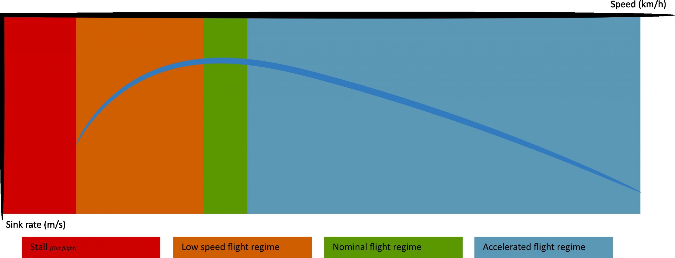– Speeds above the minimum sink rate speed, called "1st regime" (descending part of the curve).